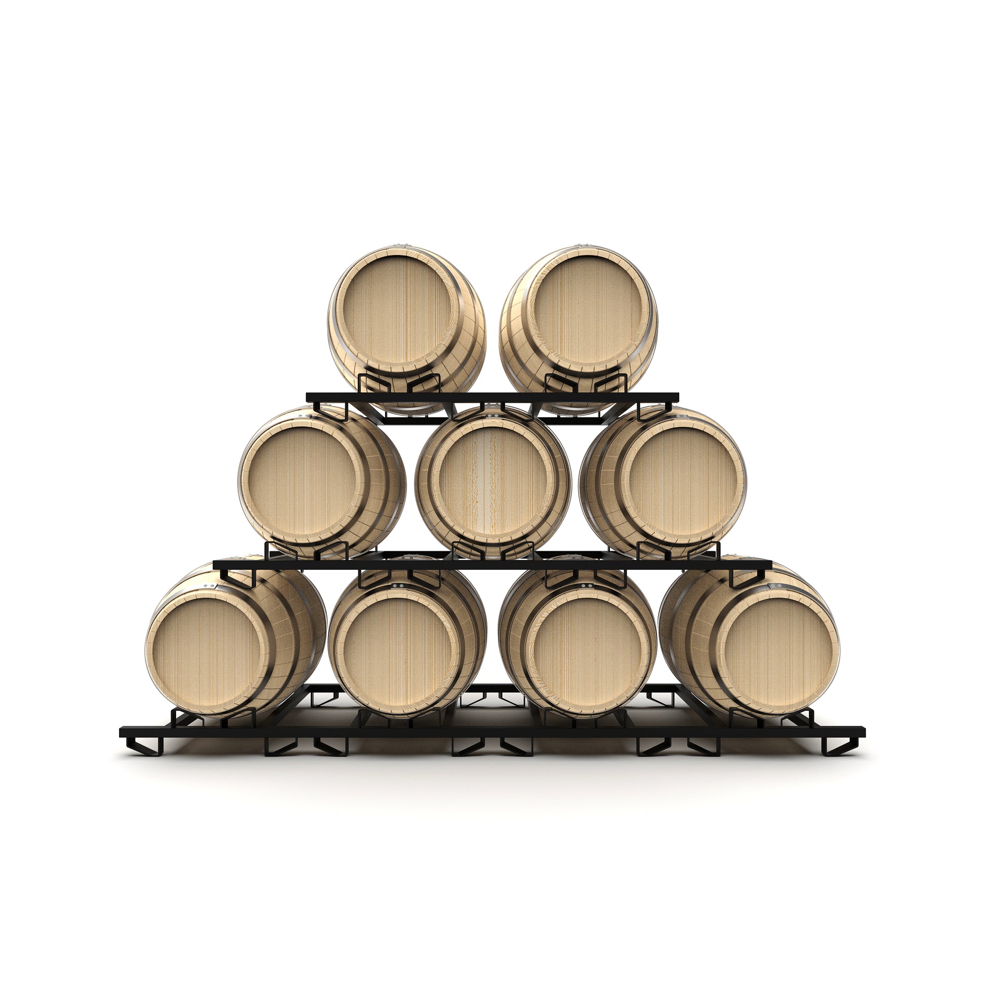 - Pyramid stack layout fits more barrels in less space than traditional racks
